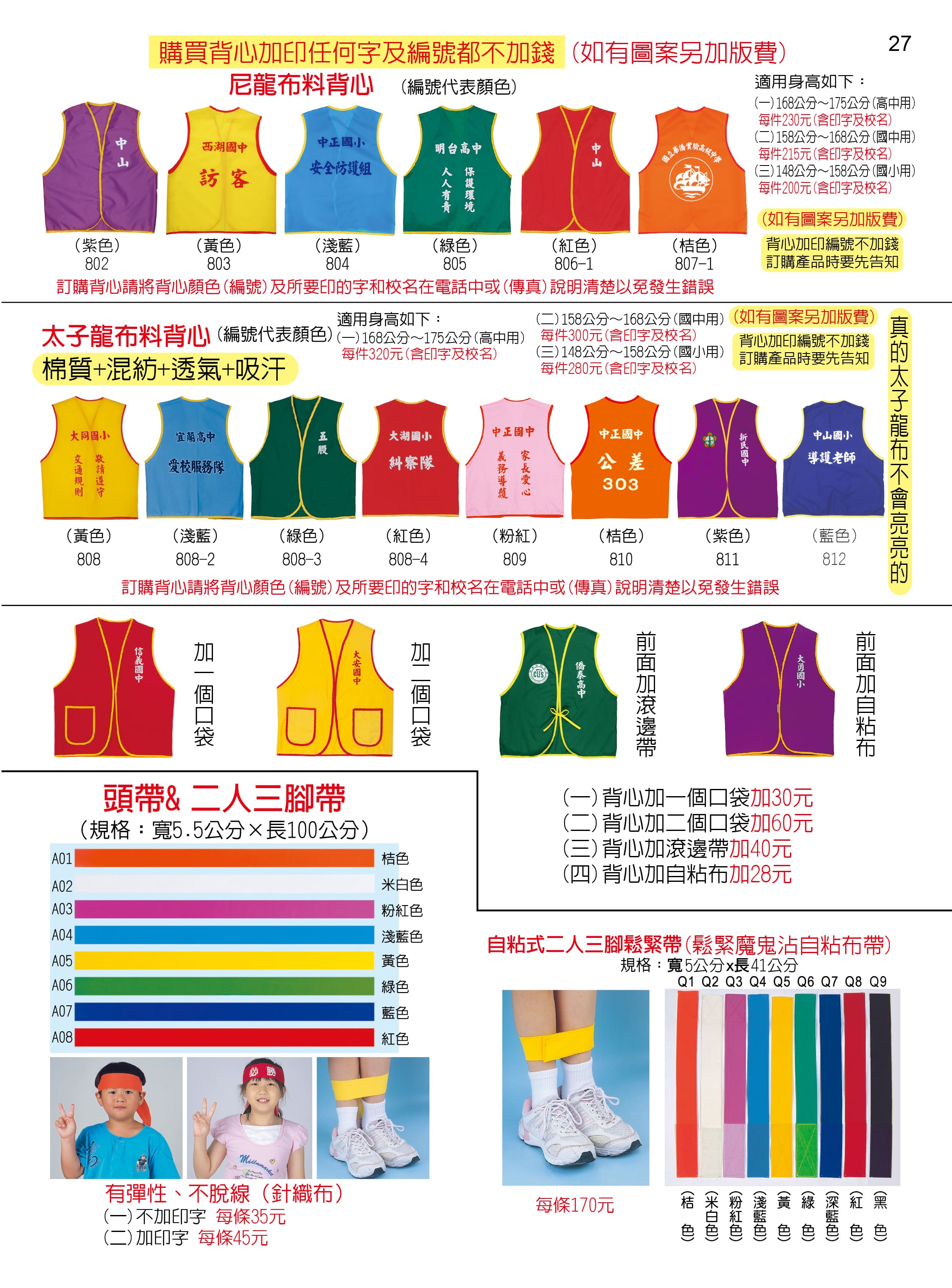 p27 (1)各種背心(2)二人三腳帶(3)頭帶