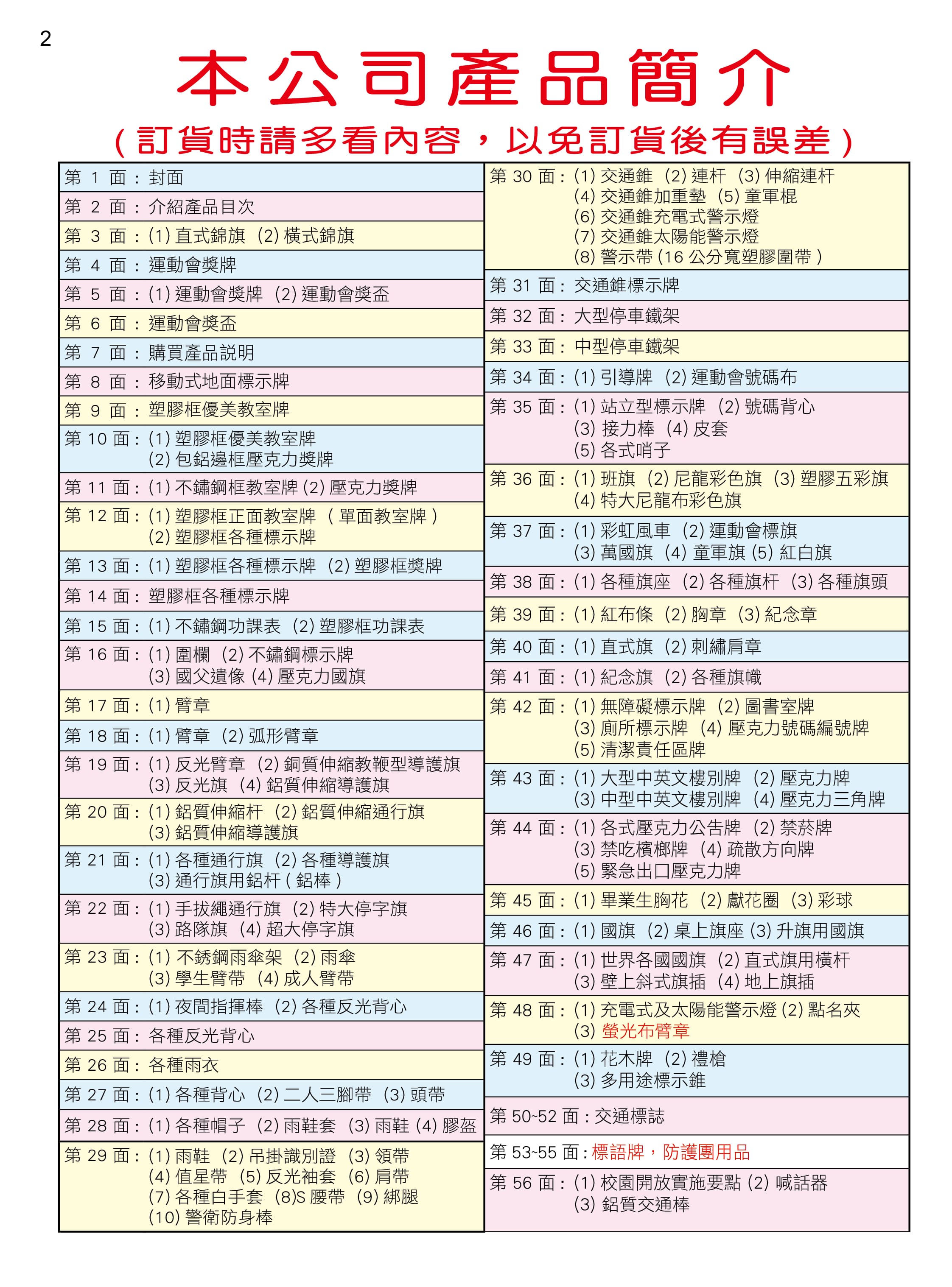 首頁 ﹥ 產品目錄 > p2 介紹產品目次 觀看大圖 介紹產品目次 介紹產品目次歡迎來電索取紙本目錄。訂購產品請撥打專線 (02) 8221-5820**請詳閱產品內容,如需客製請先來電確認,避免訂貨後與預期不符,謝謝配合!**