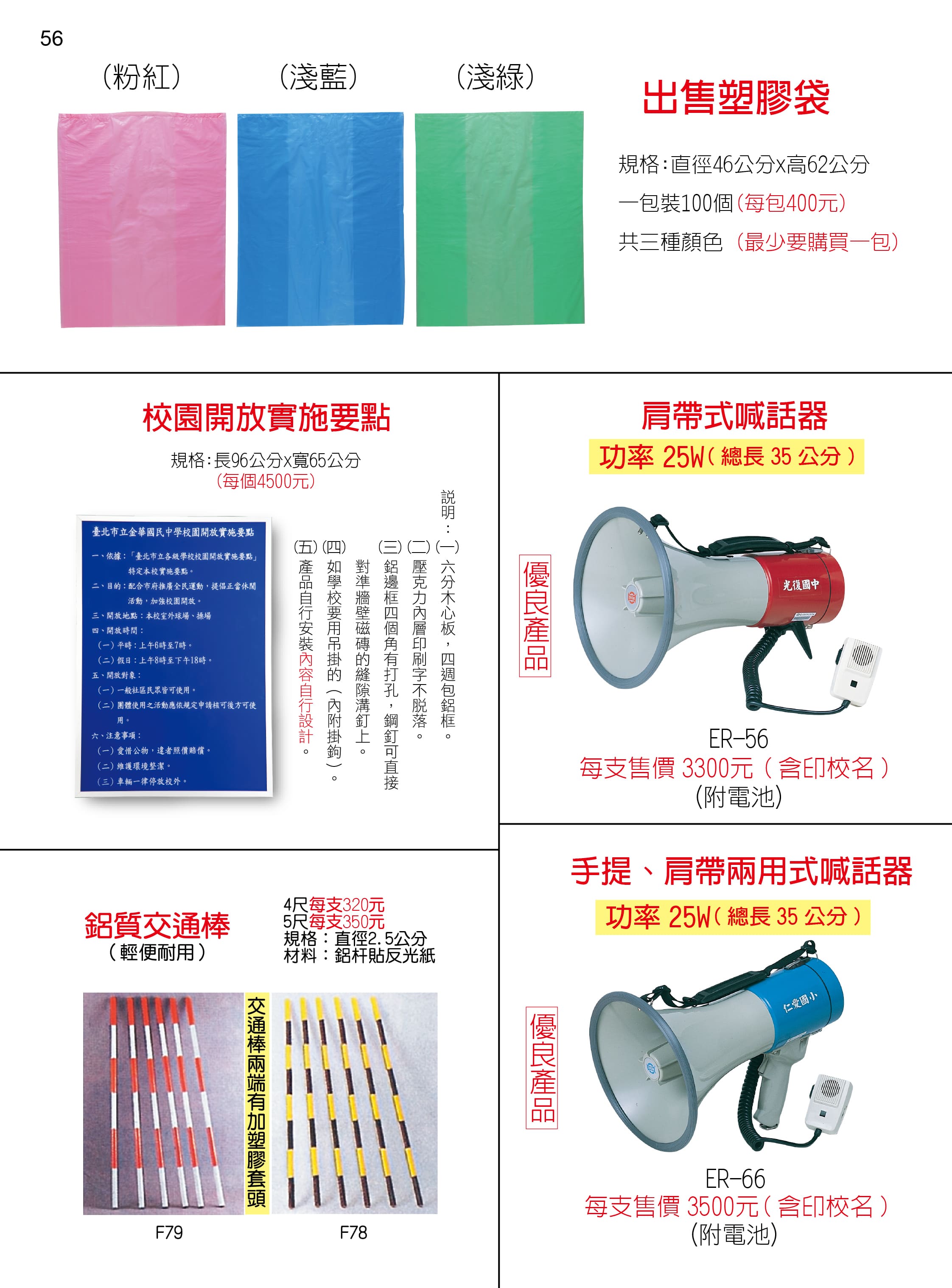(1)校園開放實施要點(2)喊話器(3鋁質交通棒